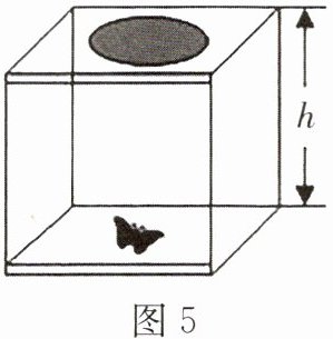 3. 如图 5 所示,小明用透明塑料盒设计了一个昆虫标本观察器,盒高 h 为 10 cm。盒底上放标本,盒盖上嵌入一凸透镜,眼睛通过凸透镜可以直接观察到标本正立、放大的像。则凸透镜焦距可选择的是(