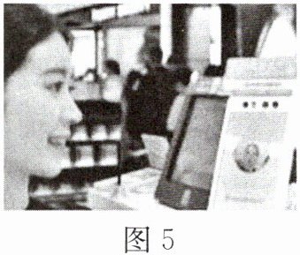 8. 如图5所示为某超市的自助结算系统,顾客将挑选好的商品的条形码对着机器扫码口依次扫描后,打开结算系统,利用摄像头“刷脸”即可通过事先绑定的银行卡自动付费,不需要使用现金或手机。下列有关说法正确的是