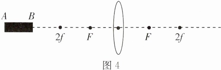 7. 在凸透镜2倍焦距以外的地方,沿主光轴方向平放一根粗细均匀的棒AB,如图4所示,则形成的像A'B'