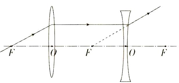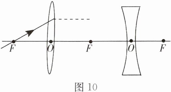 17. 如图10所示,凸透镜与凹透镜的一个焦点重合,请根据入射光线,画出相应的折射光线。