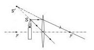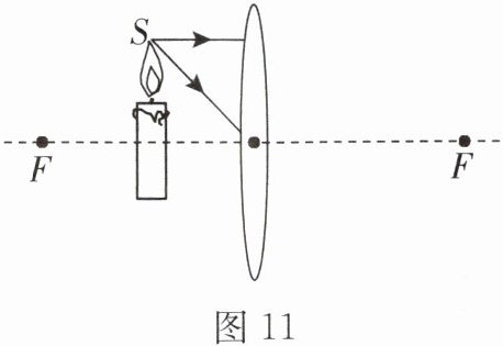 18. 如图11所示,请画出由S点发出的光经过凸透镜后的折射光线,并由此确定发光点S的像点S'。
