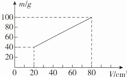 6. 在测量液体密度的实验中,小明利用托盘天平和量筒测量出了液体和量杯的总质量 $ m $ 及液体的体积 $ V $,得到几组数据并绘出如图所示的 $ m - V $ 图像,下列说法正确的是(