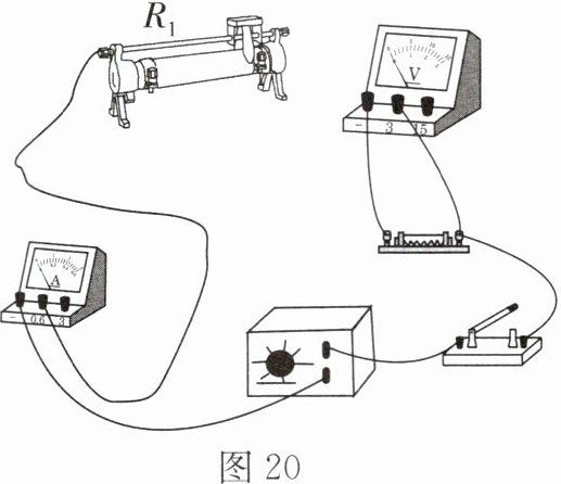 (1) 如图 20 所示是小明连接的电路,还有一根导线没有接上,请你用笔画线代替导线将电路连接完整,并保证连接这根导线后滑动变阻器的滑片位于阻值最大处。