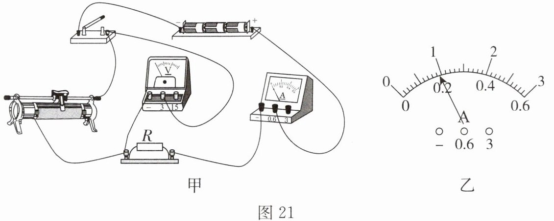 30. 在“伏安法测电阻”的实验中,小华连成如图 21 甲所示电路,正准备实验时,同组的小明检查发现电路连接有错误。