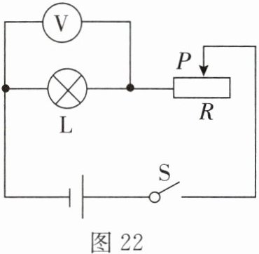 32. 如图 22 所示电路,电源电压恒为 9 V,小灯泡正常发光时两端电压为 6 V,电阻为 12 Ω。滑动变阻器 R 的最大阻值为 24 Ω。不考虑温度对灯泡电阻的影响,闭合开关 S。