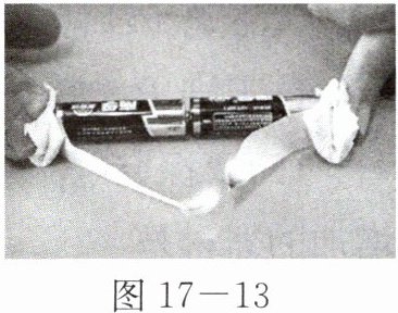 3. 如图 $17 - 13$ 所示,某同学将一条粗细不均的铝箔纸的两端分别压在两节电池的两极,发现铝箔纸发热并燃烧。关于该实验的分析,错误的是(