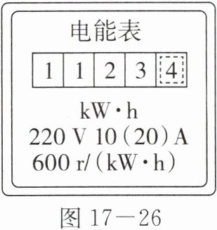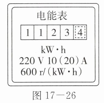 15. 如图 $17 - 26$ 是小铁家的电能表,根据表盘上的数据可知,他家同时使用的用电器总功率不能超过