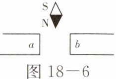 3. 如图 18−6 所示,小磁针静止在两个磁体 a 和 b 中间,据此可以推知(
