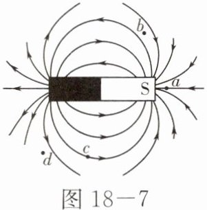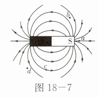 4. 图 18−7 所示的是条形磁体周围的磁感线分布,在 a、b、c、d 四点中,磁场最强的是(