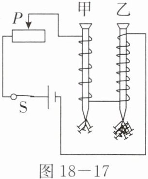 4. (多选)为探究“电磁铁磁性强弱与哪些因素有关”,实验小组连接了如图 18 - 17 所示的实验电路,开关 S 闭合,下列说法正确的是(