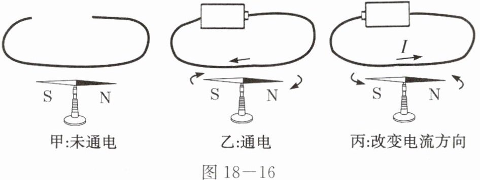 3. 小明利用如图 18 - 16 所示装置研究电和磁的关系。请仔细观察图中的装置、操作及现象,然后归纳得出初步结论: