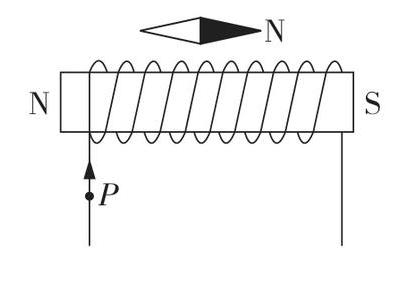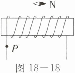 5. 如图 18 - 18 所示,请根据小磁针静止时的指向画出 P 点的电流方向并标出螺线管的 N 极。
