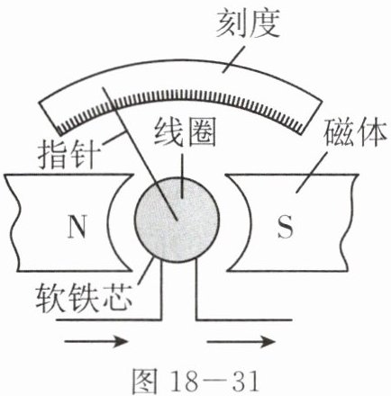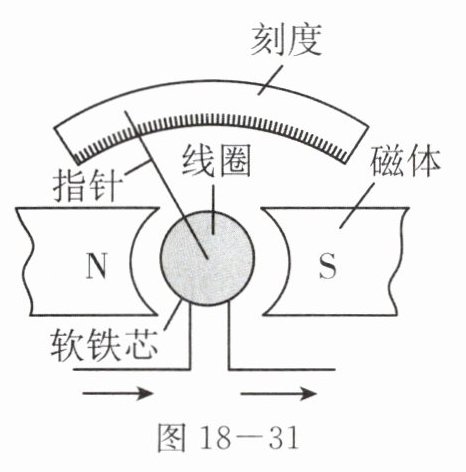 3. 如图 18-31 是电流表的内部结构示意图。当电流通过线圈时,线圈在磁场中转动从而带动指针偏转。下列选项与电流表工作原理相同的是(