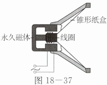 7. 扬声器是一种把电信号转化成声信号的装置,其结构如图 18 - 37 所示。当线圈中通过电流时,它就会在永久磁体的作用下运动,由于通过线圈的电流方向是不断变化的,线圈就会来回振动,带动锥形纸盒振动发出声音。与扬声器工作原理相同的是(