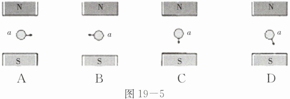 5. 图 19 - 5 中的 a 表示垂直于纸面的一根导体, 它是闭合电路的一部分, 它在磁场中沿箭头所示的方向运动时, 在哪些情况下不会产生感应电流(
