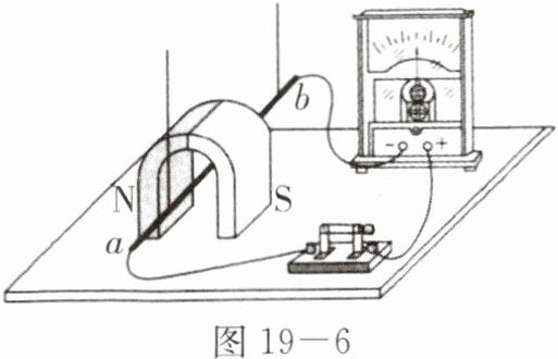 6. 探究电磁感应的实验装置如图 19 - 6 所示。闭合开关后, 导体棒 ab 保持静止, 下列措施中能使电路中产生感应电流的是(