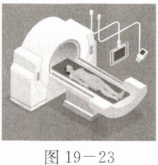 2. 如图 19-23,磁共振成像是一种医学成像技术,它采用强静磁场和变化磁场使人体组织成像。若携带金属物做磁共振成像,强静磁场会吸引铁质物品,变化磁场会使携带的金属中产生感应电流,从而使金属发热而灼伤病人。上述说明中,没有涉及的知识是(