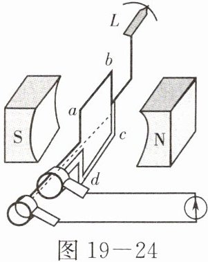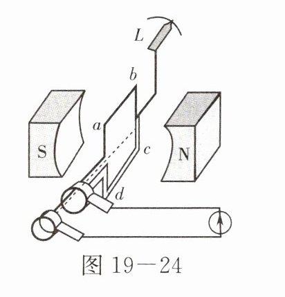 3. 如图 19-24 所示,L 为带动线圈转动的摇把,图中表是指针可来回摆动的电流表。关于此工作原理图,下列说法正确的是(