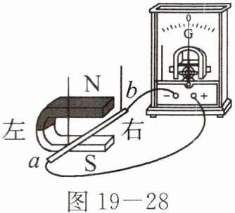 8. 如图 19-28 所示,U 形磁铁的两磁极之间有一段导体 ab,它是闭合电路的一部分,若①磁铁不动,导体向上运动;②磁铁不动,导体向下运动;③磁铁和导体都以 5m/s 的速度向右运动;④导体不动,磁铁向左运动,则其中能产生感应电流的情况是(