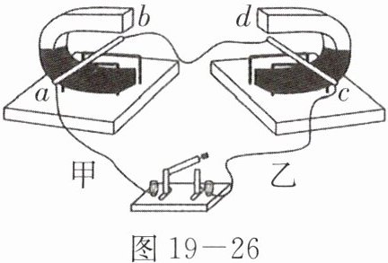 6. 如图 19-26 所示,闭合开关,先将导体 ab 水平向右移动,导体 cd 也随之运动起来。下列说法正确的是(
