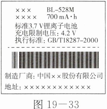 15. 如图 19-33 所示为某型号国产电池外壳上的说明文字: