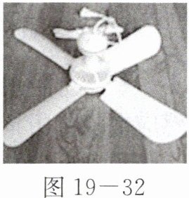 14. 如图 19-32 所示的微风吊扇,通电后扇叶转动,此过程中