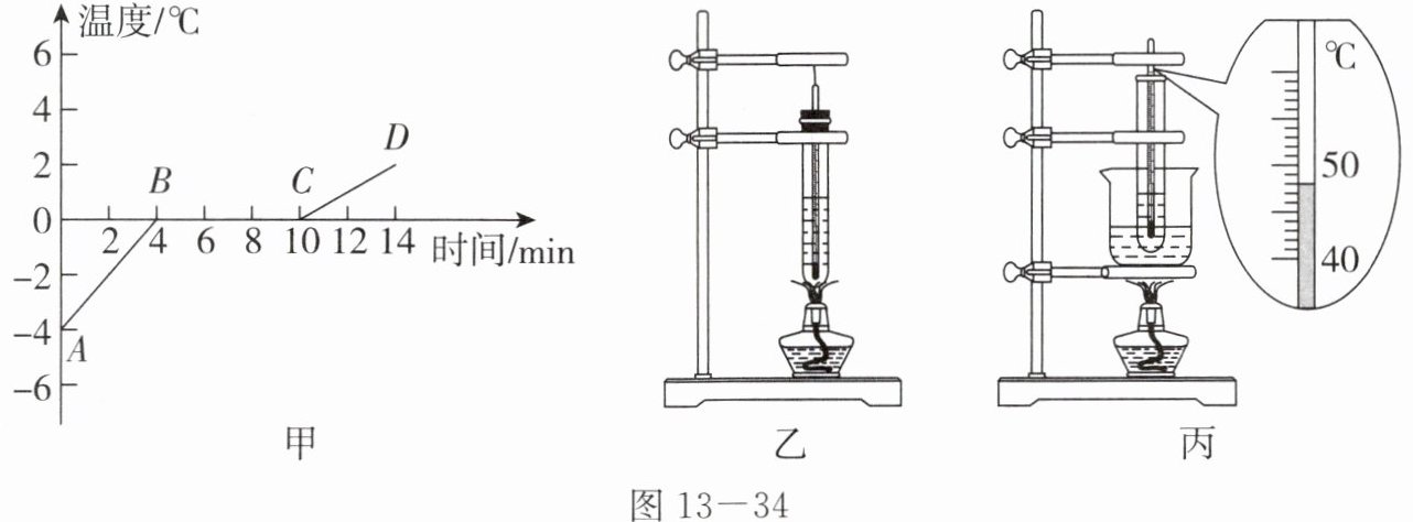 (1)如图 13 - 34 甲所示,是小明根据实验数据作出的冰加热时温度随时间变化的图像。分析图像可知,冰的熔点是