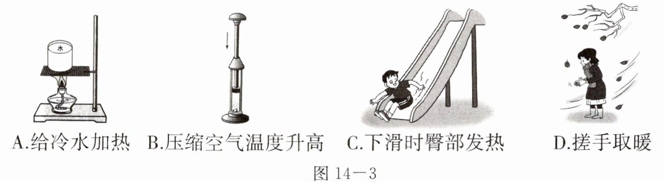 7. 如图 14−3 所示的四种现象中,属于通过热传递来改变内能的是(