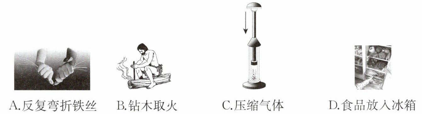 )A.反复弯折铁丝