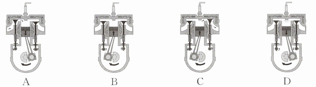 3. 春节期间多地发布了相关规定,允许在一定时间和区域内燃放烟花爆竹,以渲染过节热闹气氛。点燃爆竹后,它内部的化学物质剧烈燃烧,产生高温高压气体,冲破爆竹的外壳发生爆炸。此过程与内燃机四个冲程中原理相似的是(