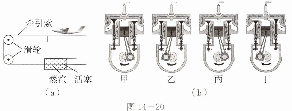 )A.图(a)中气缸内的蒸汽体积膨胀对活塞做功,使舰载机获得牵引力