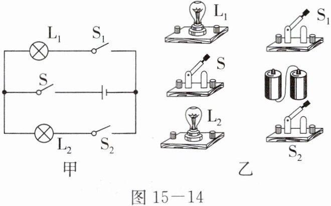 4. 如图 15 - 14 所示,根据电路图连接实物图。