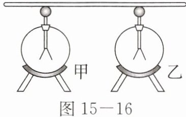 5. 如图15-16所示,甲、乙两个验电器,甲不带电,乙带正电,用金属杆将甲、乙连接起来,下列说法正确的是(