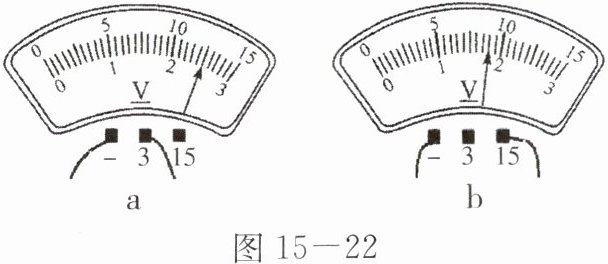 2. 读出图15-22中电压表的示数。a: