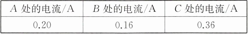 (4)如表所示,经过正确实验操作,得到了A、B、C三处的电流值。