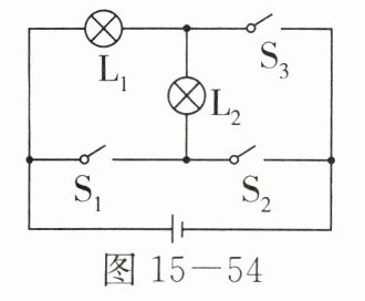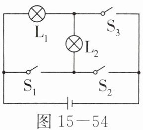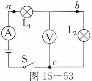 13. 如图 15−53 所示,闭合开关 $ S $,两灯均正常发光。下列说法中正确的是(