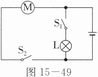 9. 如图 15−49 是简化了的玩具汽车的电路图,以下说法中正确的是(