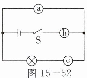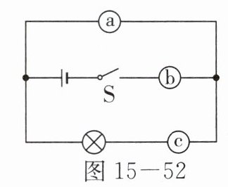 12. 如图 15−52 所示,对于 $ a $、$ b $、$ c $ 表示的电表的说法正确的是(