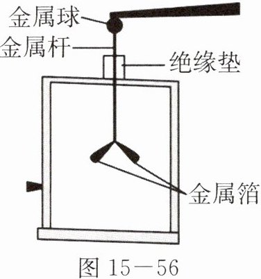 18. 如图 15−56 所示是实验室的验电器,它的工作原理是同种电荷