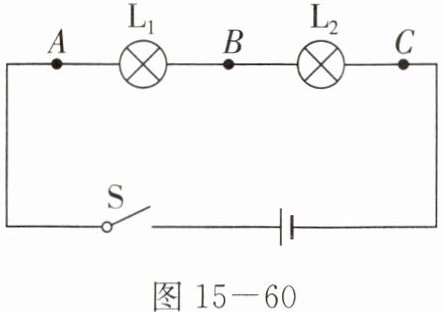 24. 小希用如图 15−60 所示电路来探究串联电路的电压特点。