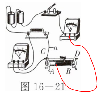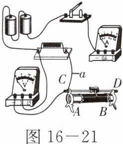 (2)正确连接电路后,若图 16 - 21 中导线 $ a $ 内部开路,其余均完好,闭合开关,观察两只电表的示数,发现电压表