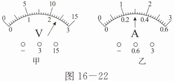 (3)排除故障后,移动滑动变阻器的滑片到某一位置,电压表和电流表的示数如图 16 - 22 所示,则 $ R_x $ 为