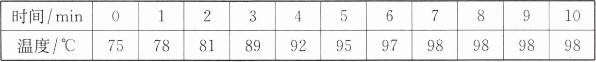 9. 如图 13 - 12 所示,在“观察水的沸腾”实验中,每隔 1min 记录一次水的温度,得到下表数据。