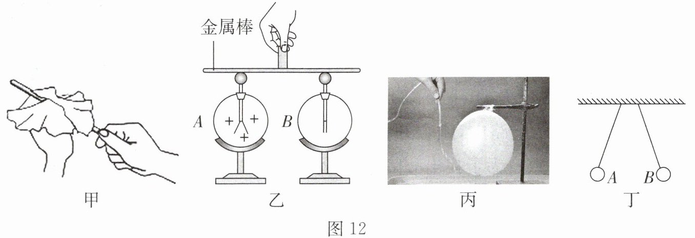 )A.甲:被丝绸摩擦过的玻璃棒会带上正电荷,在这个过程中玻璃棒失去了电子