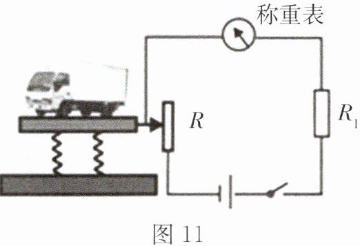 17. 交通运输部门提示,因为超载造成的交通事故频频发生。为了严查超载车辆,高速公路收费站对过往的超载货车实施称重检测,称重机的原理可以简化为如图 11 所示的电路。下列说法中不正确的是(
