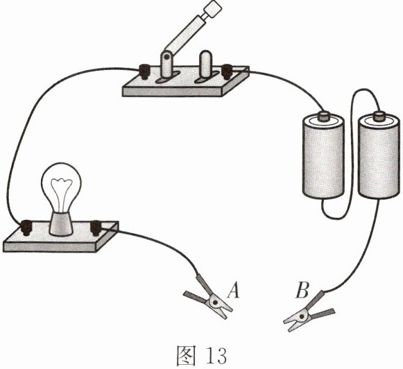 23. 如图13所示,将不同导体接到电路A、B之间时,闭合开关,可通过观察、比较