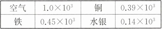 26. 下表中列有几种物质的比热容。在质量相等的情况下,如果它们吸收或放出相同的热量,则温度变化最大的是
