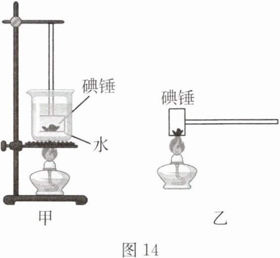 (选填“甲”或“乙”)更合理,原因是甲中碘颗粒被加热后会直接升华变成碘蒸气,乙中的碘颗粒吸热除了发生升华外,还可能会发生熔化