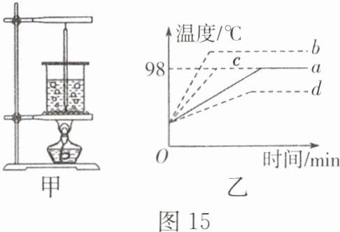 27. 利用如图15甲所示的装置做“探究水沸腾时温度变化的特点”的实验。
