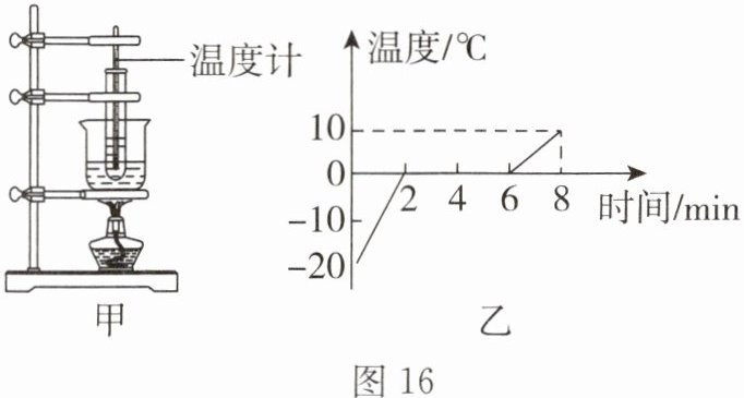 28. “探究冰熔化”实验的装置如图16甲所示。根据实验数据绘制的熔化图像如图16乙示。